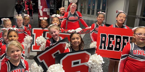 Welcome to our UNLV Cheer Youth Cheer Program! We are passionate about empowering young athletes through the excitement of cheerleading. Our program focuses on building confidence, teamwork, and athletic skills while fostering a love for the sport. With a coaching staff comprised of current UNLV Cheer athletes, we provide opportunities for kids of all skill levels to learn choreography, stunts, and cheers. Our goal is to instill a sense of camaraderie and Rebel pride, encouraging each cheerleader to shine both on and off the field. Join us as we inspire the next generation of UNLV cheerleaders and create lasting memories together! Go Rebels Forever!